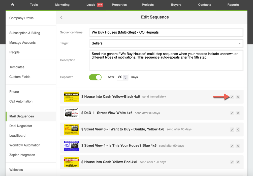 Once you have both in place, follow these steps to attach the number to a pre-built or custom direct mail sequence.