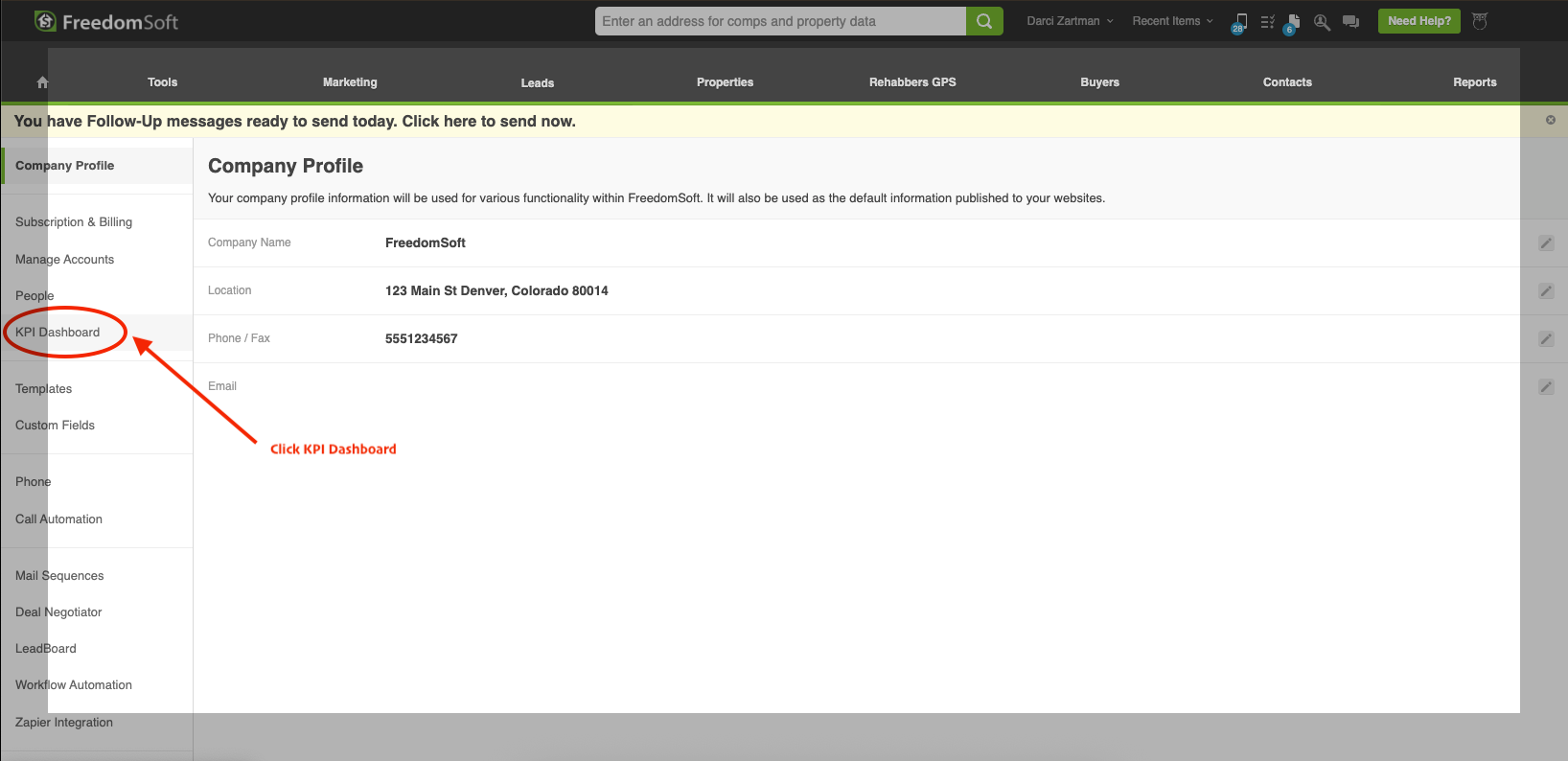 Click KPI Dashboard -This is where all your report templates and custom report settings live.