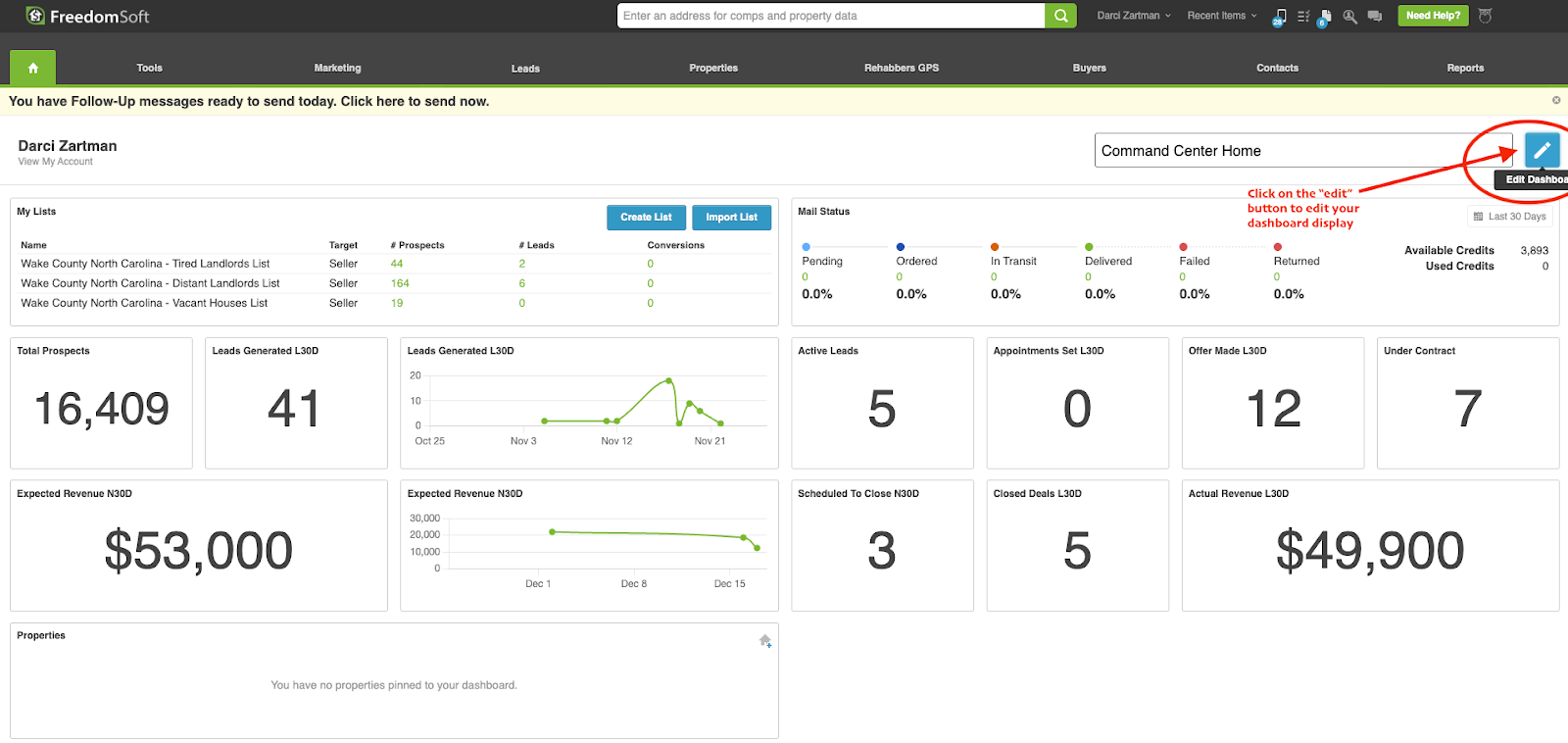 Go to your Home Screen and click Edit Dashboard. You’ll now be in drag-and-drop edit mode