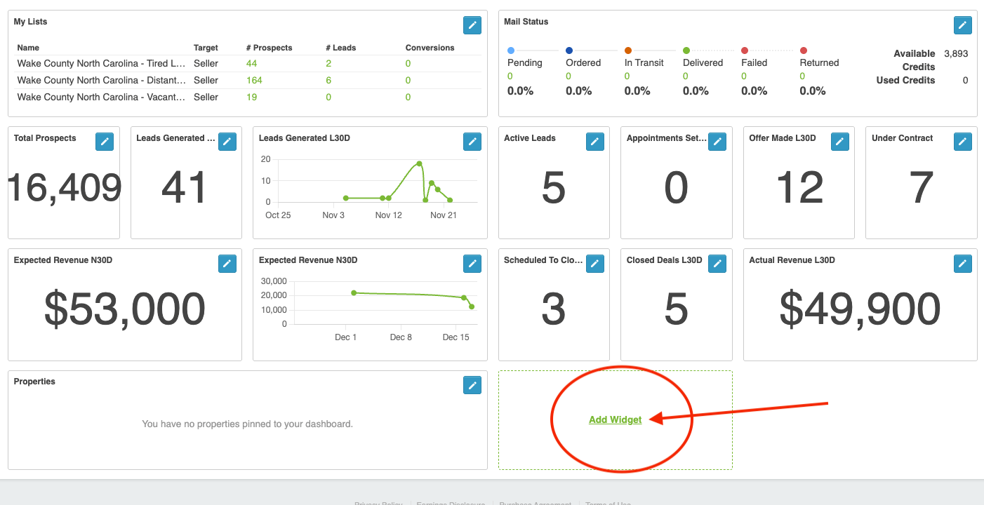 Step 2: Scroll to the bottom of the dashboard and click “Add Widget”