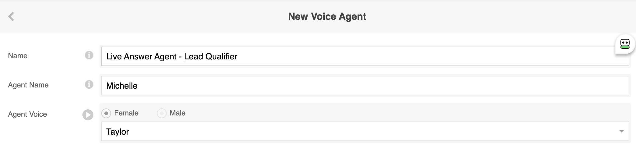 These do not need to match the agent name. For example, you could name your agent “Michelle” while using the “Taylor” voice.