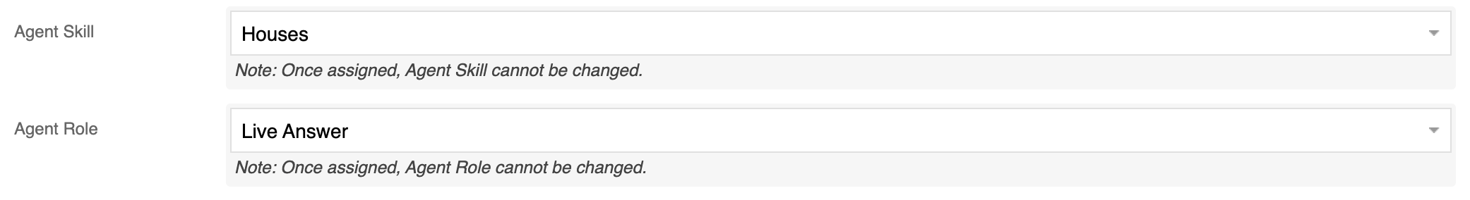 Once the skill and role are set and saved, they cannot be changed later.